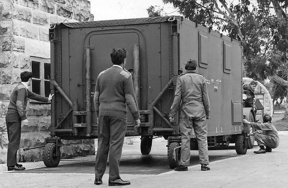 1. I remember the ATRELS. Inside there was a type 11 processing machine on one side and opposite a type 12. I thought the interior design was good but a little cramped. The bad points were the individually steered wheels and if you went over an uneven road surface it was possible for a wheel to leave the ground. The out riggers had to be jacked up to remove wheels and a ratchet was used (seen in above photo being used to steer wheels). Problems could arise if the jacking was not synchronized on all four corners. I remember all in the photo except Alan Saunders. I was SAC Neil Hobbs, I worked on 543, 39 squadrons and at RIPF. Last year I visited RAF Wyton – wow it has changed.