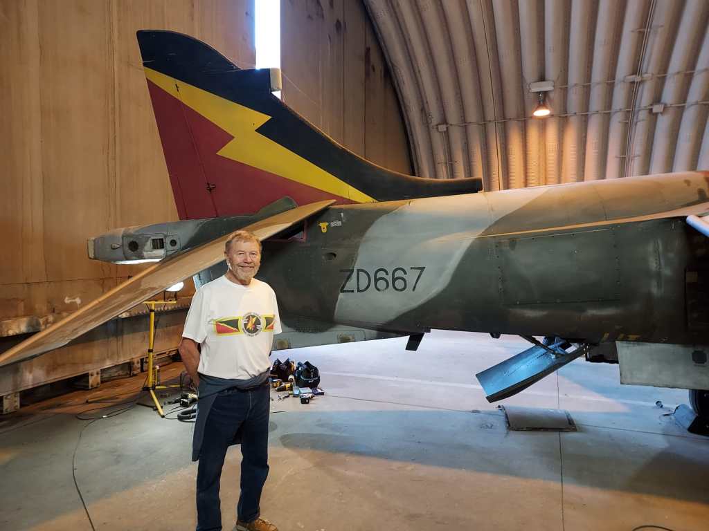 ZD667 was the first of a batch of four Harrier GR.3s built for the RAF as a stop-gap whilst the second generation Harrier (GR.5 later converted to GR.7 and GR.9 variants), was entering service in the late-80s. As a consequence of this, ZD667 was actually a newer aircraft than several of the Harrier GR.9s that were in service with the RAF up until December 2010. ZD667 only spent eight years in frontline service with the RAF before being retired. Following retirement, ZD667 was transferred to the Royal Navy at RNAS Culdrose, where it was used for training Fleet Air Arm groundcrew in the art of handling aircraft on carrier decks. With the loss of the Fleet Air Arm’s fixed-wing component (due to the retirement of the Sea Harrier), there was no longer a requirement for fixed-wing deck handling training. During May 2007, ZD667 was moved to Culdrose’s satellite airfield at RNAS Predannack, where it was used for fire and crash rescue training. ZD667 was purchased by Everett Aero in December 2012 and subsequently bought by the Museum in February 2013 following a generous donation by Bentwaters Aviation Society member Brian Smee. ZD667 has been re-painted in the very colourful markings it wore whilst assigned to IV(AC) Sqn at RAF Gütersloh in West Germany during the late 1980s.